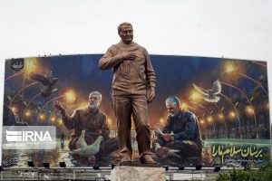 تندیس سردار شهید قاسم سلیمانی روز جمعه همزمان با روز جهانی قدس با حضور سردار حسن زاده فرمانده سپاه محمد رسول الله تهران بزرگ، پیروز حناچی شهردار تهران، برزین ضرغام مدیرعامل زیباسازی شهرداری، سردار محمدرضا یزدی مشاور فرمانده سپاه در ابتدای بزرگراه شهید سلیمانی غرب به شرق رونمایی شد.