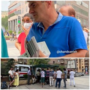 تصویری از گردشگران ایرانی در صف تزریق واکسن کرونا در ایروان ارمنستان را مشاهده می کنید. پاسپورت ایرانیان در صف واکسن، در دست یک مسول ارمنستانی است.