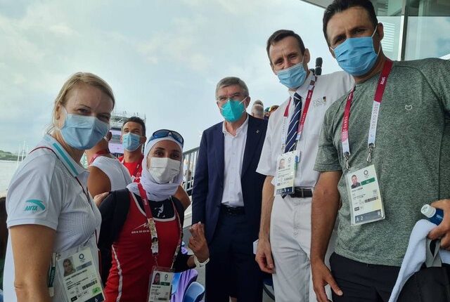 بعد از مسابقات فینال B رویینگ المپیک توکیو، افشین فرزام و نازنین ملایی مربی و قایقران المپیکی ایران دیداری را با توماس باخ رییس کمیته بینالمللی برگزار کردند.