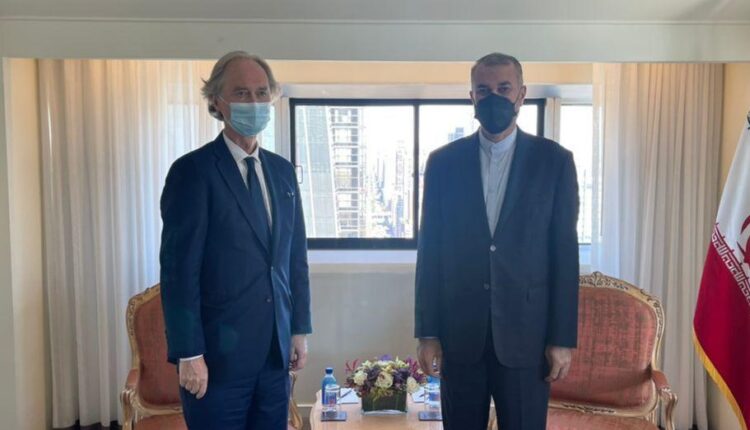 حسین امیرعبداللهیان وزیر امور خارجه کشورمان و گیر پدرسون فرستاده ویژه دبیرکل سازمان ملل متحد در امور سوریه ظهر امر‌وز در دیداری در حاشیه مجمع عمومی، در خصوص وضعیت سوریه به بحث و تبادل نظر پرداختند.